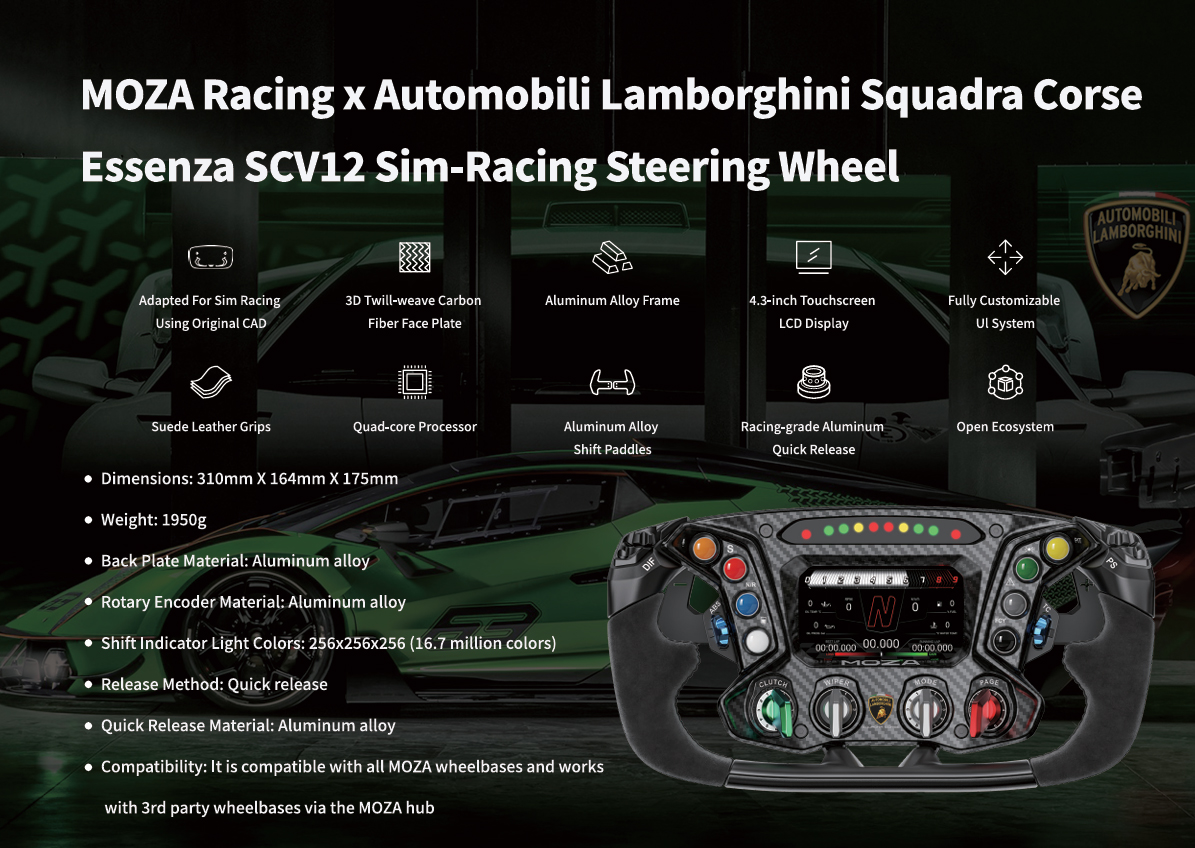 Con un diseño elegante, materiales de alta calidad y fabricación de precisión, este volante trae a la vida el legado de carreras de Lamborghini, ofreciendo a los usuarios una experiencia auténtica e inmersiva.