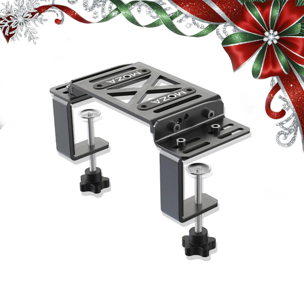 El Moza R9 Table Clamp es la solución ideal para montar tu volante MOZA R5, R9 o R12 en un espacio limitado. Fabricado en acero de alta resistencia mecanizado por CNC de 5 mm de grosor, ofrece una estabilidad sólida como una roca y se adapta a escritorios de hasta 50 mm de grosor.