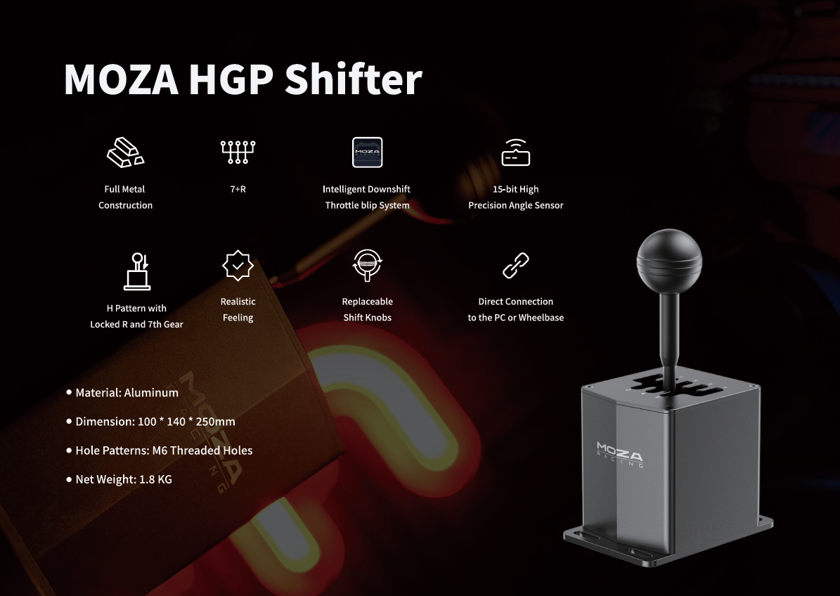 Fabricado con aluminio anodizado de grado aviación, mecanizado por CNC, el MOZA HGP Shifter es sólido, resistente y confiable.