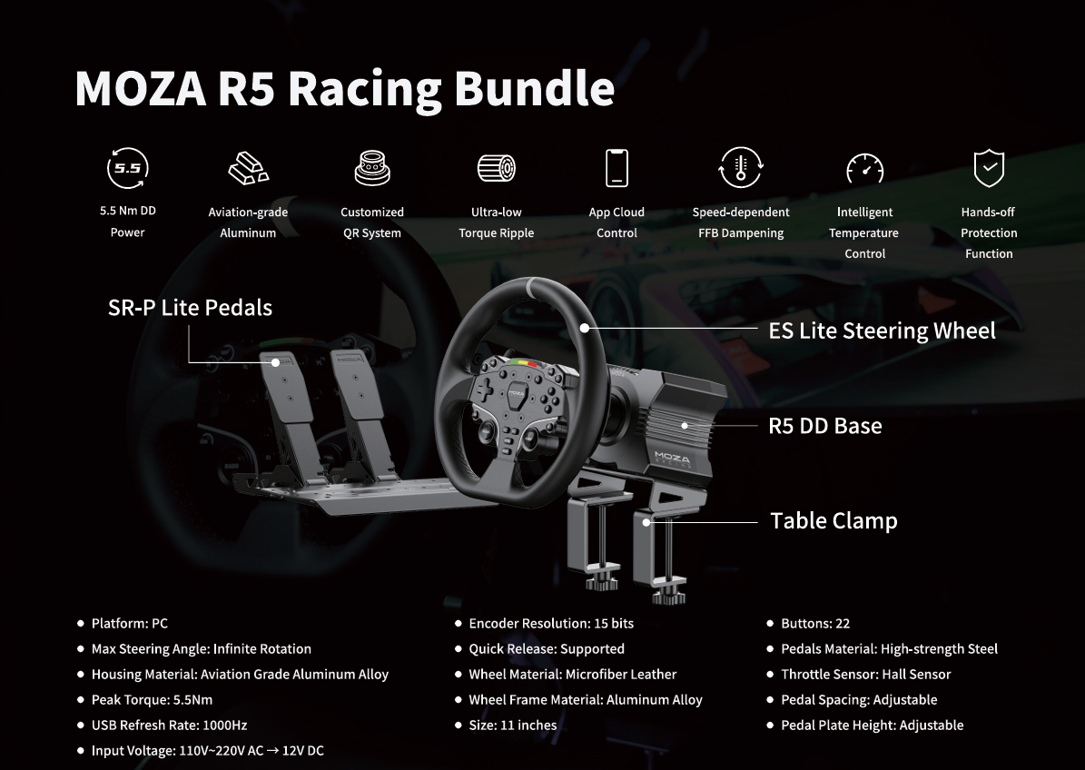 Control de aplicaciones La configuración de la base del volante, el volante, los pedales, etc. se puede modificar a través de la APLICACIÓN MOZA